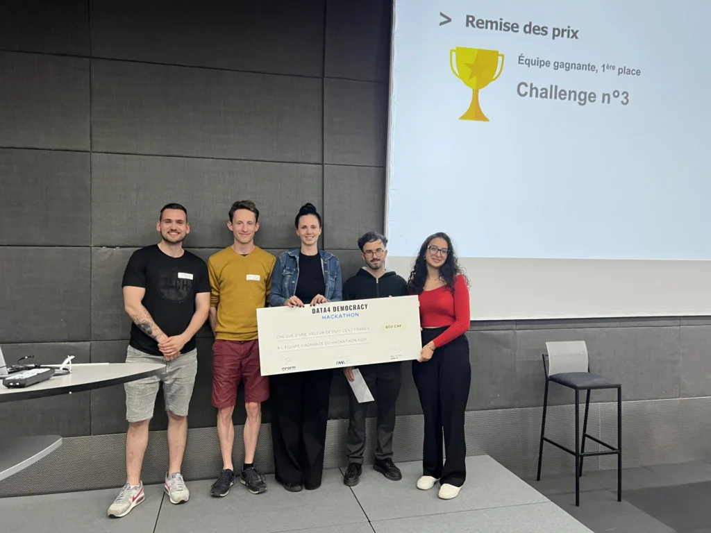 Pensé et initié par InForm, le Hackathon Data4Democracy consacré à la transparence en démocratie a réuni avec succès plus d’une vingtaine d’étudiants les 6 et 7 juin 2025, au Swiss Digital Center de Sierre. Organisé par la HES-SO Valais-Wallis en partenariat avec l’IMI, InForm et le Swiss Digital Center, cet événement a permis à des jeunes talents interdisciplinaires de concevoir des solutions innovantes favorisant l’accès à l’information publique.